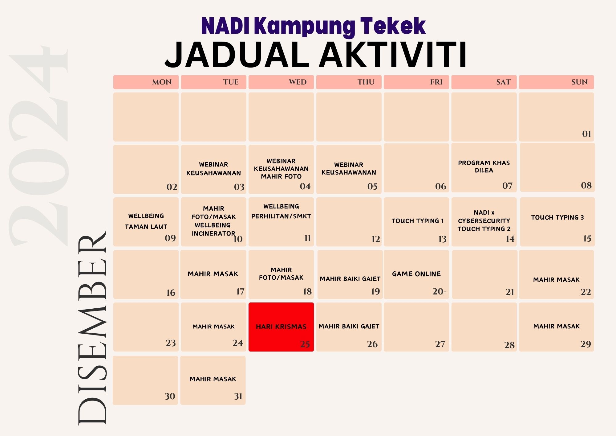JADUAL AKTIVITI DISEMBER 2024 NADI KG TEKEK