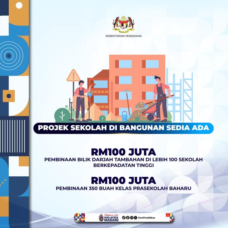 Belanjawan 2026 memberi tumpuan kepada usaha bagi menangani isu sekolah padat terutamanya di kawasan yang berkepadatan tinggi. Bilik darjah tambahan akan dibina di lebih 100 buah sekolah seluruh negara. Bagi memperkasakan pendidikan peringkat prasekolah, sebanyak 350 buah kelas prasekolah baharu […]