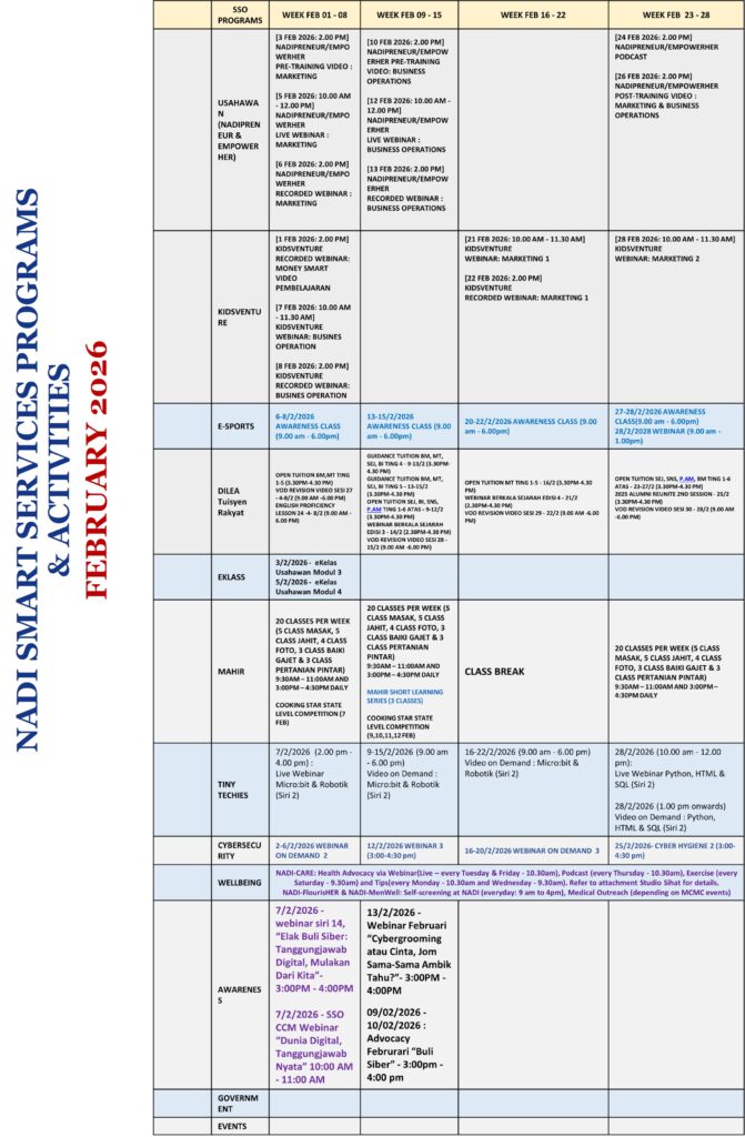 JADUAL AKTIVITI BULAN FEBRUARI 2026